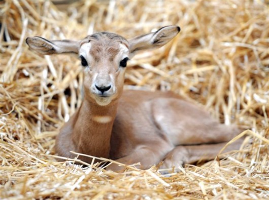 Meet Ray-Ray, the Maryland Zoo's newest Addra Gazelle calf. Born February 5, the calf is strong and healthy. Named after Ravens players Ray Lewis and Ray Rice, the calf isn't quite yet ready to play with the big boys as he weighs just 11lbs 6oz (5.3kg). The Addra Gazelle, also known as the Dama Gazelle, is the largest and tallest of all gazelles. This species is critically endangered due to drought, disease communicated by domestic livestock, and habitat destruction.