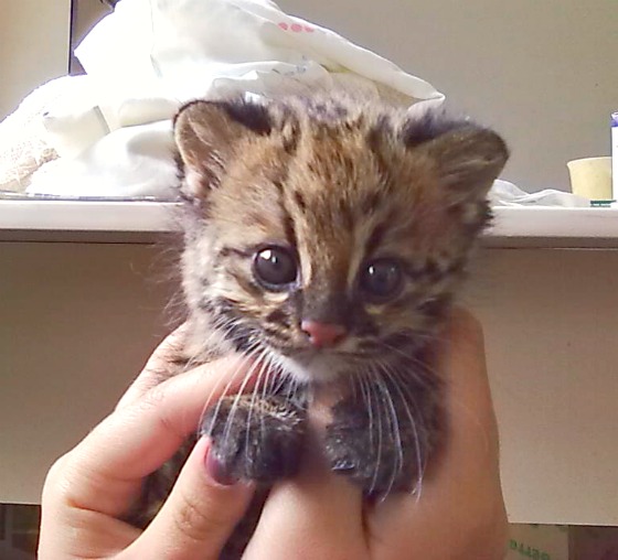 Today ZooBorns is proud to showcase our first Oncilla cub and first submission by Brazil's Mata Ciliar conservation organization. On August 16th, the Mata Ciliar Association received a call about an orphan Ocelot cub found near a controlled fire area (fire belt) in Brazil. Although the cub's mother most likely escaped the fire, she did not return for her cub. When staff arrived, they realized the cub was actually an Oncilla, a smaller relative of the Ocelot, and brought the cub back to their rehabilitation facility for hand-rearing. Only two months old, the cub is a healthy male. Staff named him Tost. Controlled burns for agricultural lands are one of the main causes of injured animals throughout Brazil.
