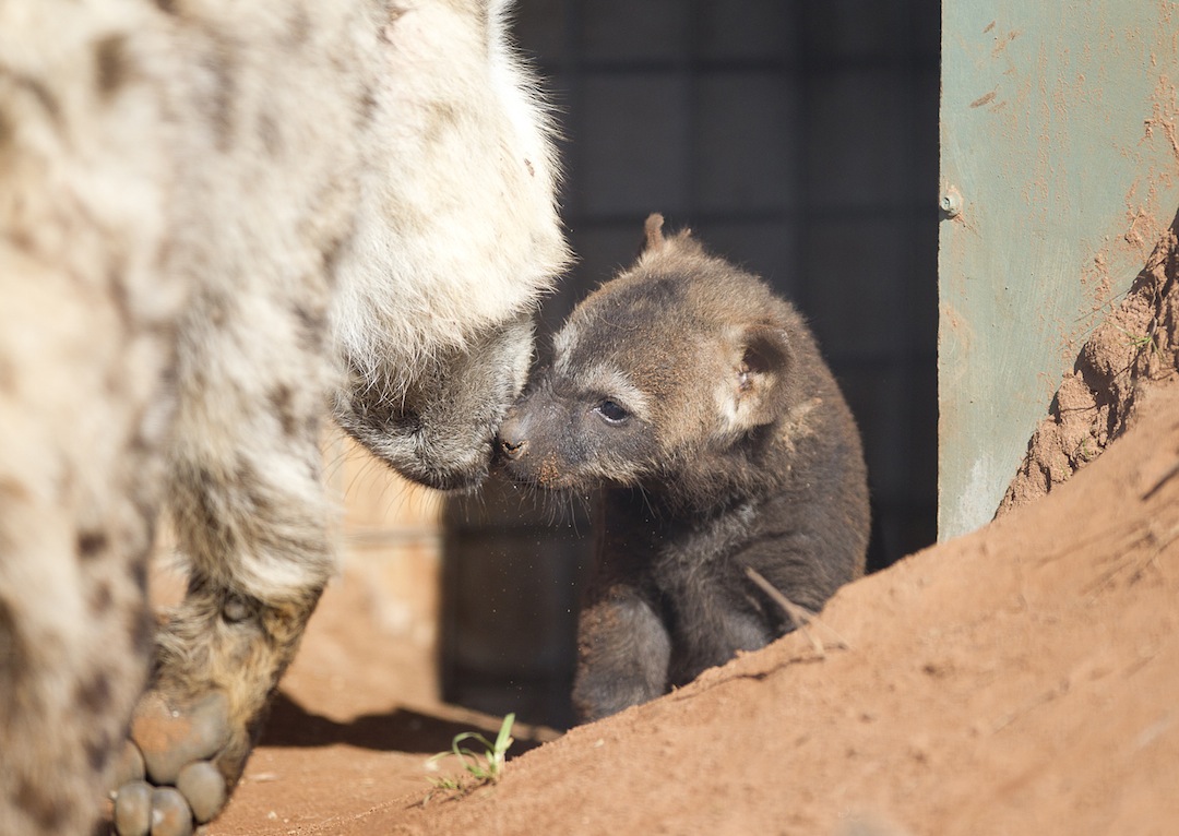 For the first three weeks of its life Forest’s cub was housed in a separate den area where Mom would join it over night and zookeepers monitored the pair via security cameras. Introductions between the cub and clan went so well it is now a full time member of the group, so visitors may get the chance to spot Monarto’s newest addition as well.