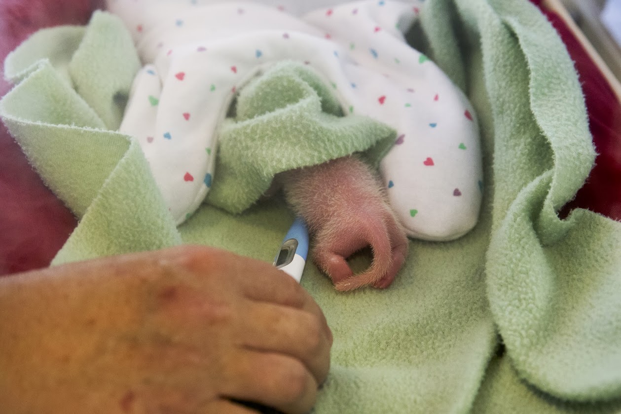 In the wild, Giant Panda mothers typically care for only one cub when twins are born. Thus, it is normal in the wild for only one of the twins to survive. Giant Panda twins have survived in zoos within and outside of China. Usually this is accomplished by rotating the cubs with the mother for the first few months. However, Giant Pandas are born very tiny, and there is a high risk of mortality in the first few months. This risk increases in twins, which tend to have lower birth weights than do single cubs.
