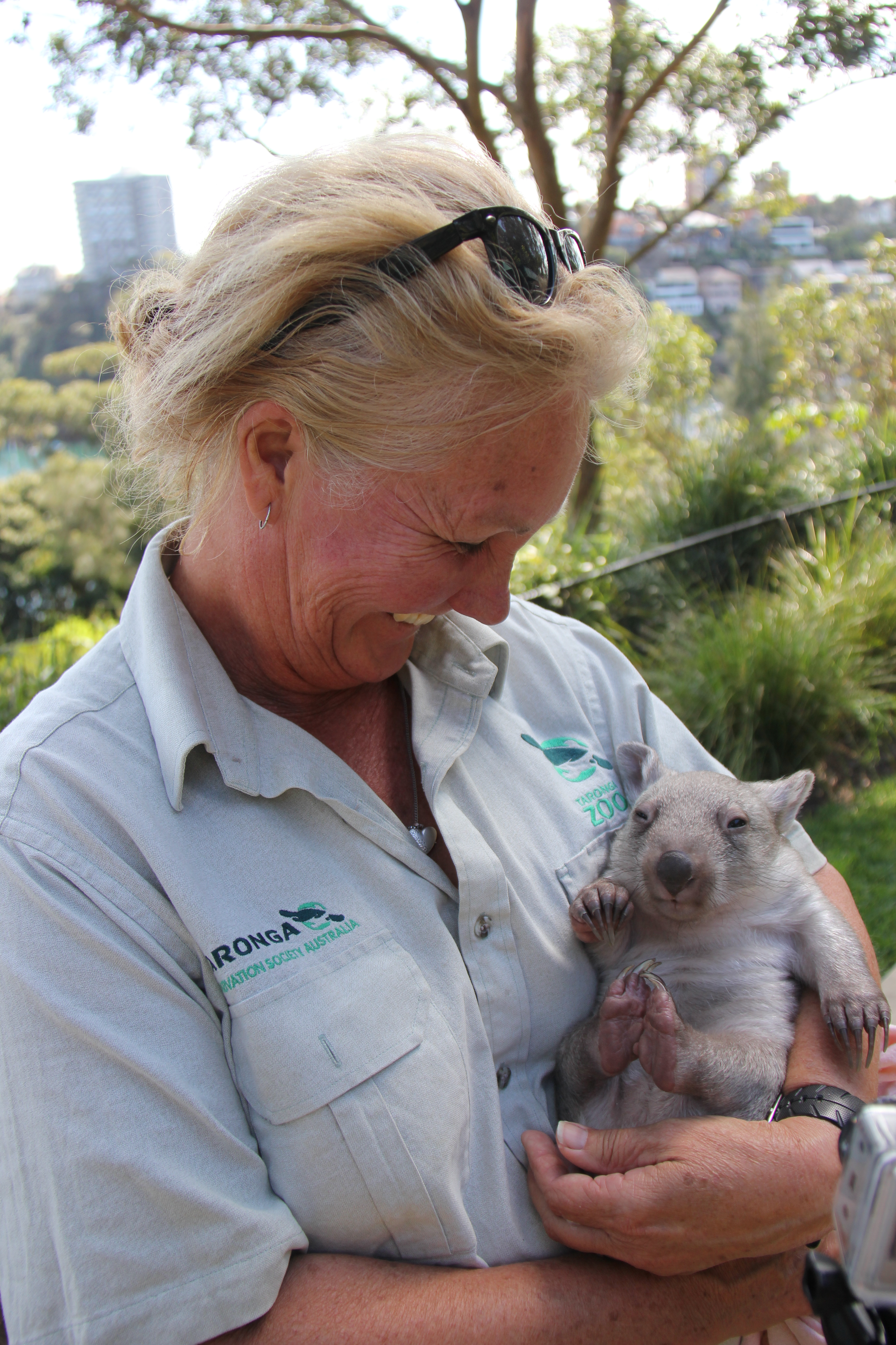 Taronga Keeper, Evelyn Weston, has taken on the role of surrogate mother to the six-month-old joey, carrying a makeshift pouch and stopping work for bottle feeds every five hours.