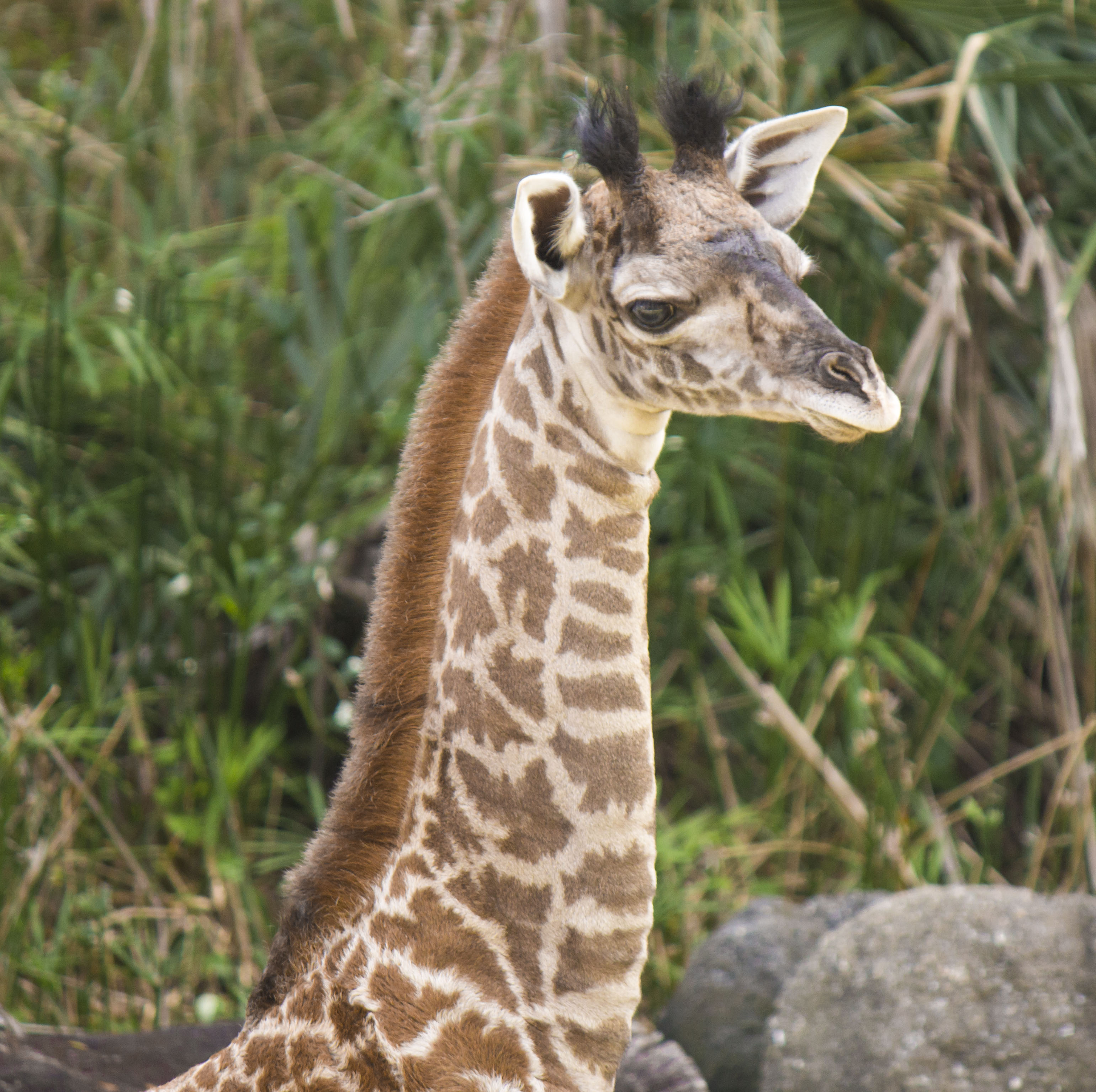 This calf is a Masai Giraffe, which is one of nine subspecies of Giraffe. All Giraffes are native to Africa, but their numbers are shrinking due to habitat loss and human encroachment into formerly wild lands.