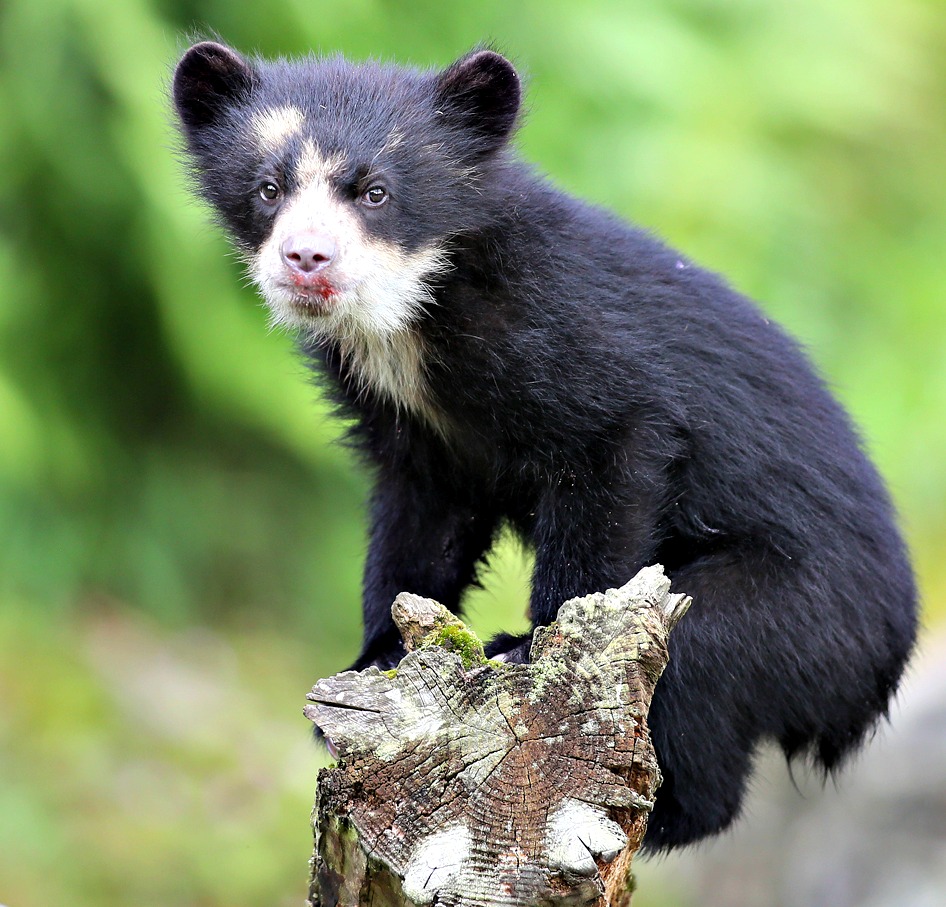 Andean Bears are also known as Spectacled Bears due to the light fur around their eyes, which can look like spectacles against the Bear’s darker fur. No two bears have the same pattern.