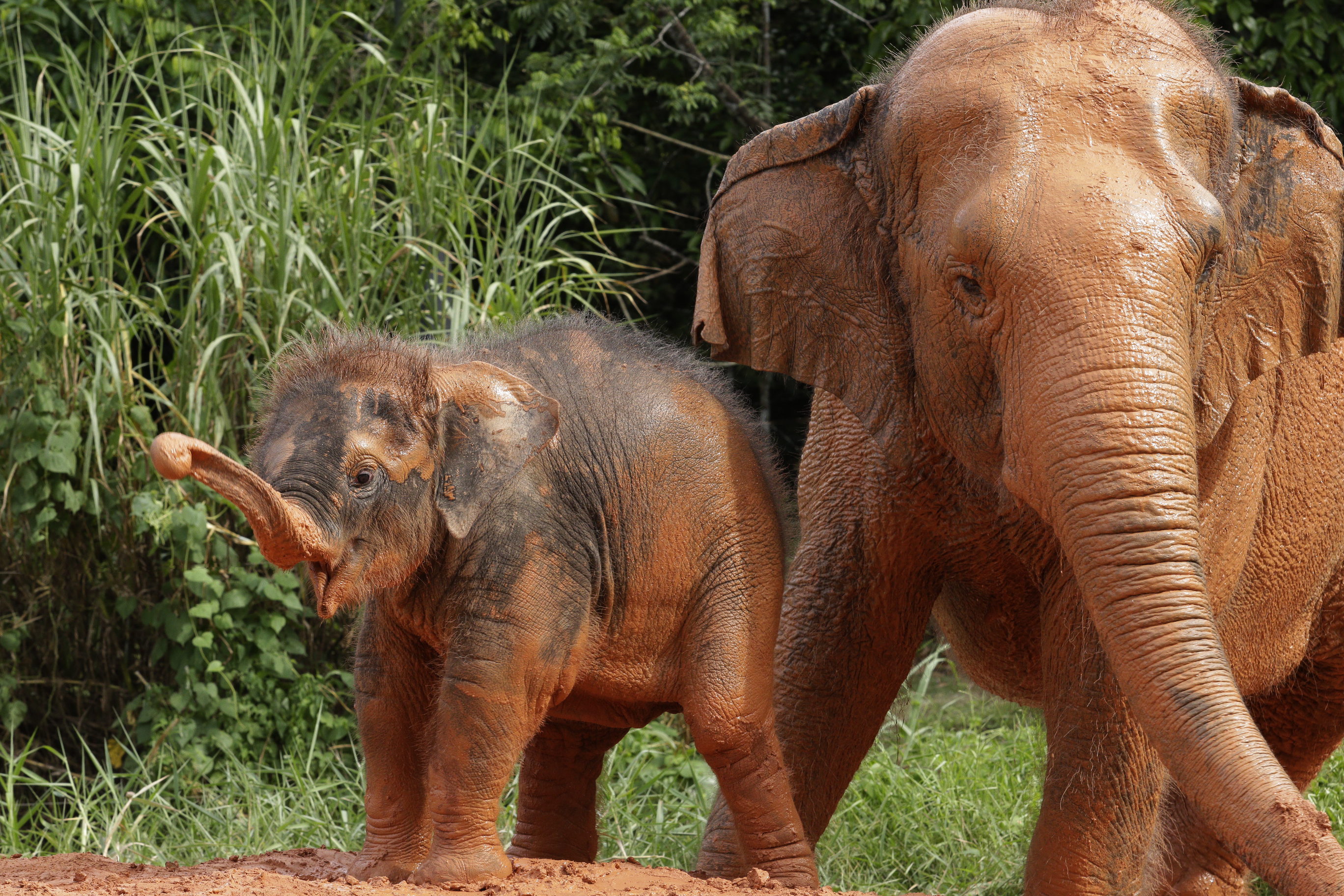 While mom’s milk continues to make up her staple diet, Neha has started trying to munch on bananas as she experiments on solid food. She has been steadily gaining weight at a rate of 1-2kg daily (normal for an Elephant), and is now 352kg, more than double her weight at birth. Her human carers say she is an exceedingly playful and carefree elephant.