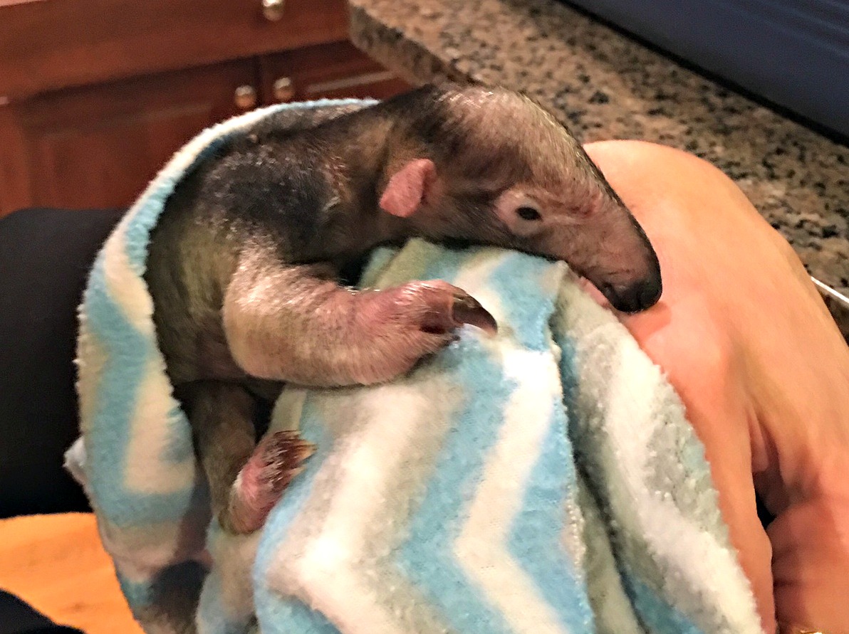 “Anara is doing well and is a great mother,” adds Dr. Barnes. “We are delighted that both pups are female, as her previous two surviving pups were male. We need more females in order to ensure we have a genetically healthy population for his species in North America. Her mate Ridley, who came from Germany, has valuable genes that are not well represented so far. Those genes go with his offspring and help diversity the genes of Giant Anteaters in human care in zoos accredited by the Association of Zoos and Aquariums.”