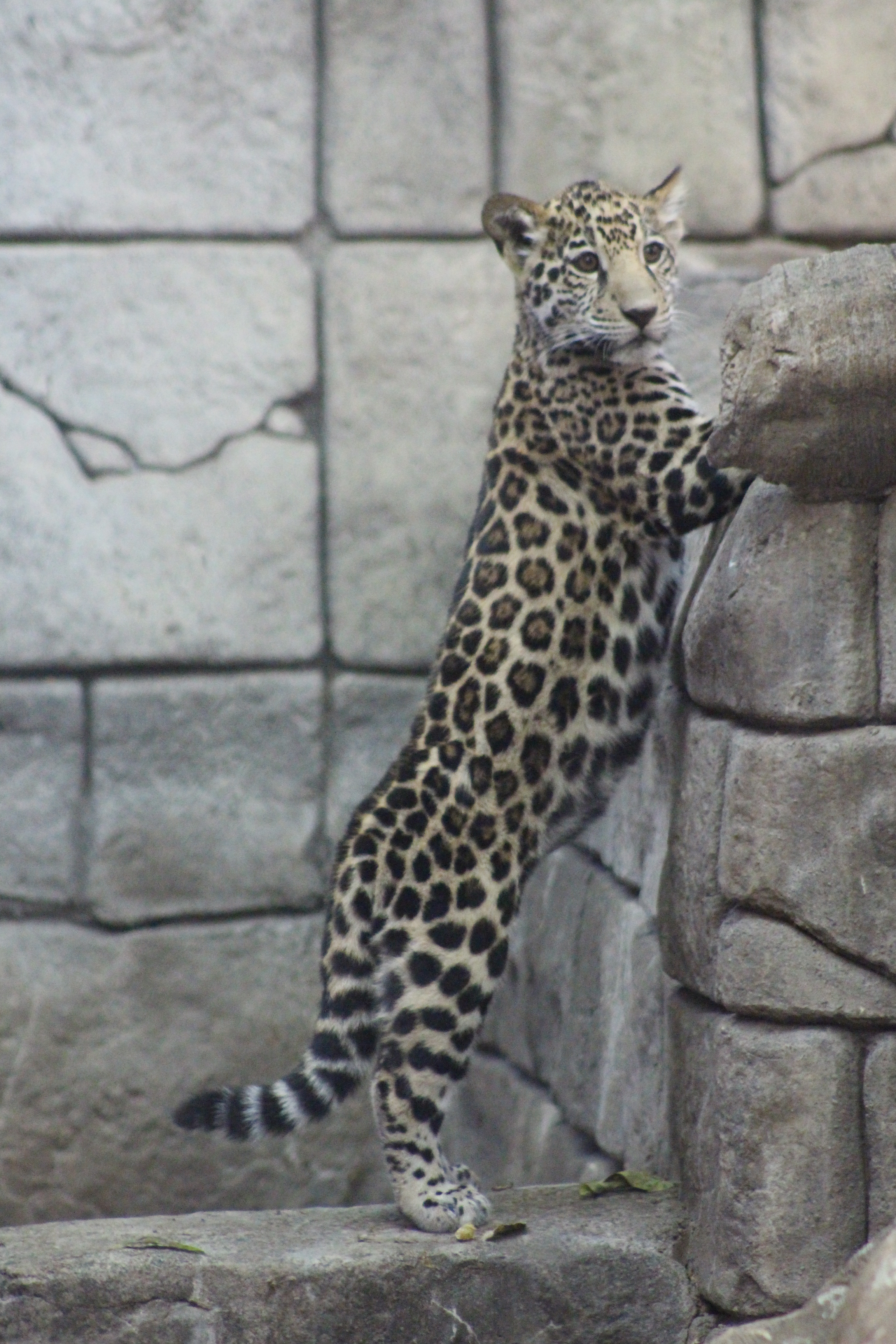 Staff reports that the young Jaguar is also working to perfect another important big cat skill—climbing. According to Keepers, she learned to climb out of the nest box earlier than previous Jaguar cubs in their care, and once she was given access to the exhibit, it took no time at all before she was climbing up into the trees and onto the higher perching.