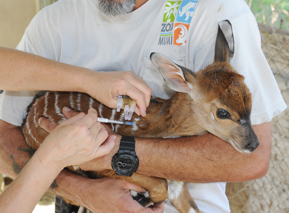 One of the most beautiful antelopes in the world has been born at Newquay Zoo. The Nyala (pronounced ‘inYhala’), a female, has big ears, dark eyes and endearingly long, wobbly legs. This is the second calf of the year for Mum Ayra and Dad, Arnold. Curator of animals John Meek said: “Ayra is a very experienced mum – this is calf number five all told. The little one is doing extremely well and seems to be very confident, even when she joined the rest of the herd. This is another great breeding success for this stunning species.”